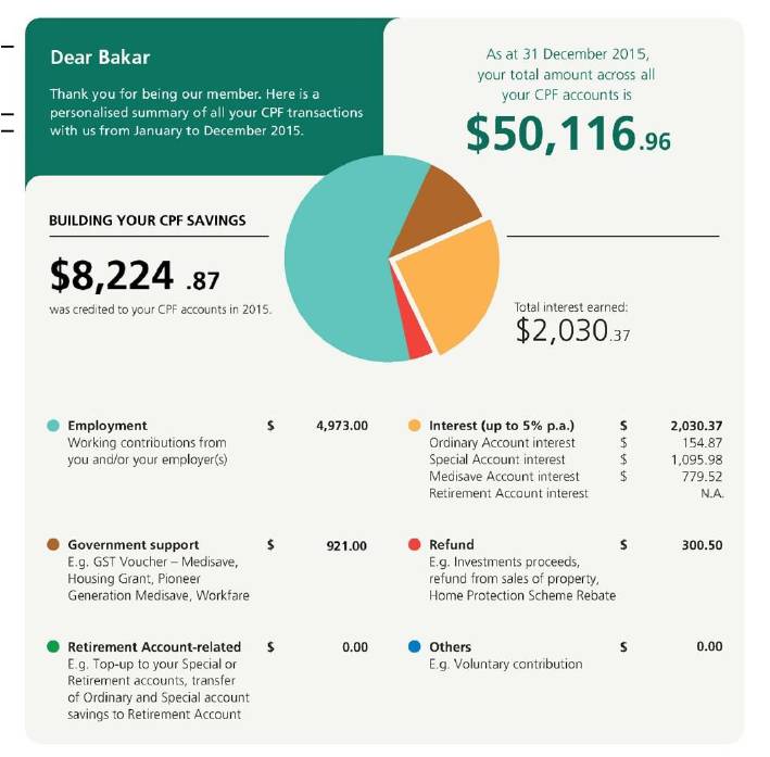 • The interest that was earned in your CPF, broken down by the various accounts