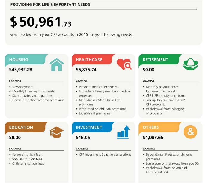 So what are the pie chart and table about? The information is actually not new, it’s about the transactions in and out of your CPF account over the past year. Only this time it is summarised and presented in a much more user friendly format – that is easier to understand for the lay-man.