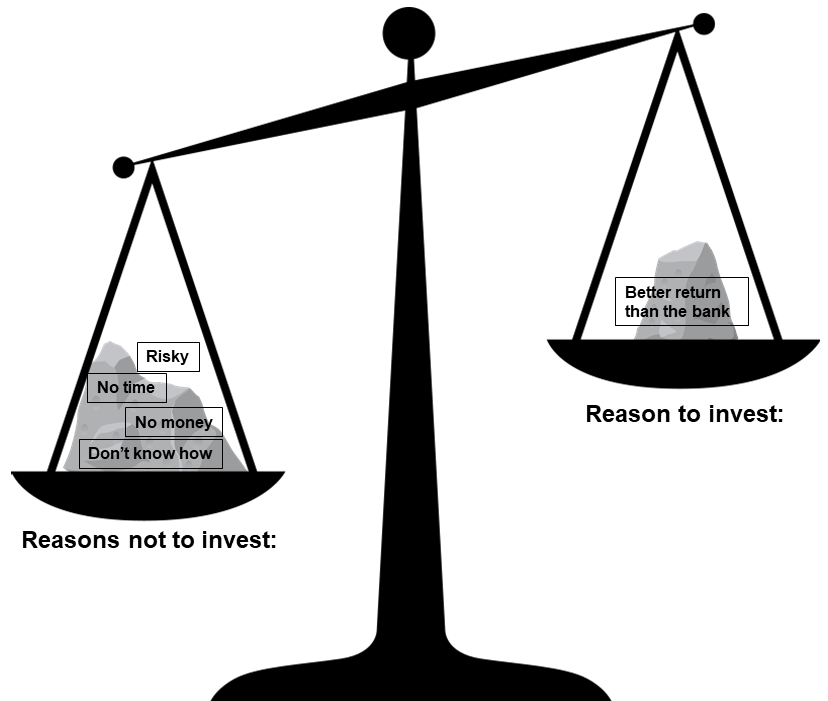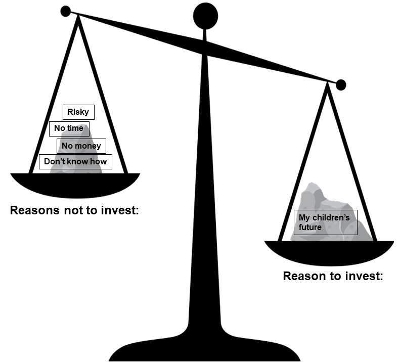 Because we each have an internal scale within us. When our reasons for not investing is stronger than our “why”, it’s natural for us to stay or return to where we are.